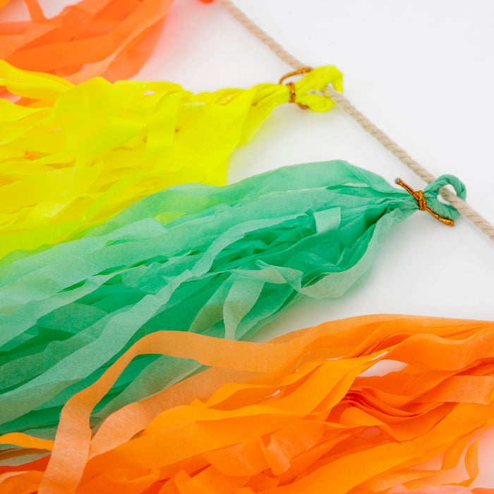 Decorate a special occasion with this delightful garland. The tassels come in alternating shades of striking blue and green, skilfully suspended from an ivory cord.
