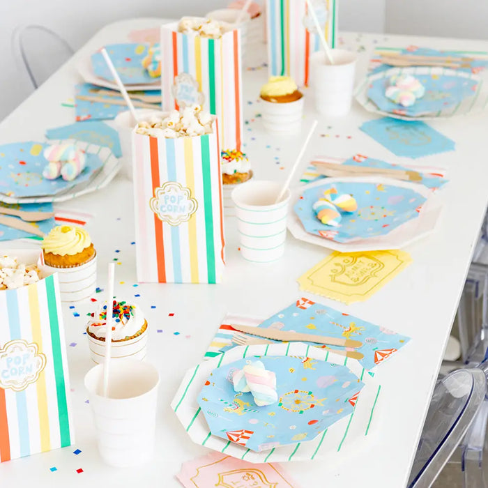 Carousels and cotton candy...oh my! Featuring carnival-inspired colors and pops of gold foil, these favor bags bring all the fair fun! We think they're perfect for fair, carnival, and circus parties!