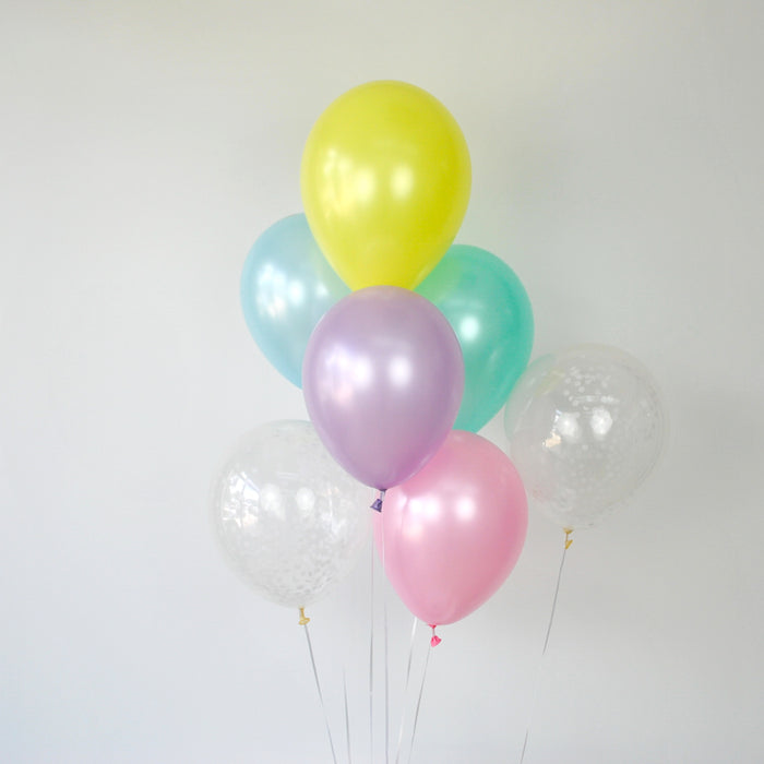 Small - includes 5 pastel color latex balloons and 4 confetti filled balloons.