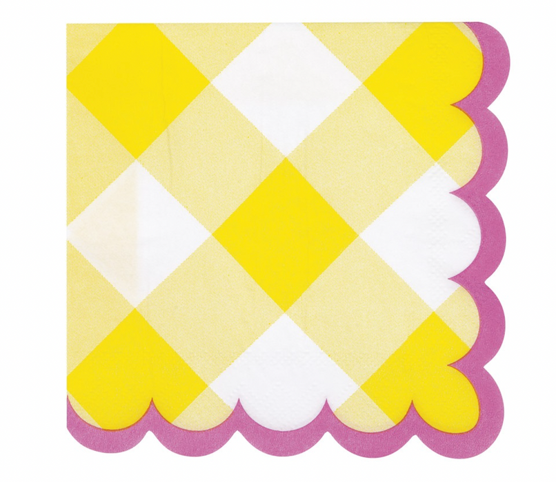 Pastel Gingham Scalloped Edge Beverage Napkins