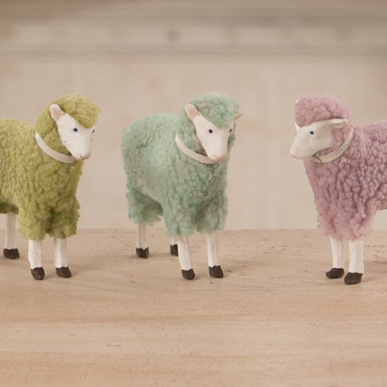 It's so fluffy! Inspired by antique German sheep, this fresh take with soft lavender wool will bring the feeling of Spring indoors. Collect the rest of the flock in pink, blue, and green!