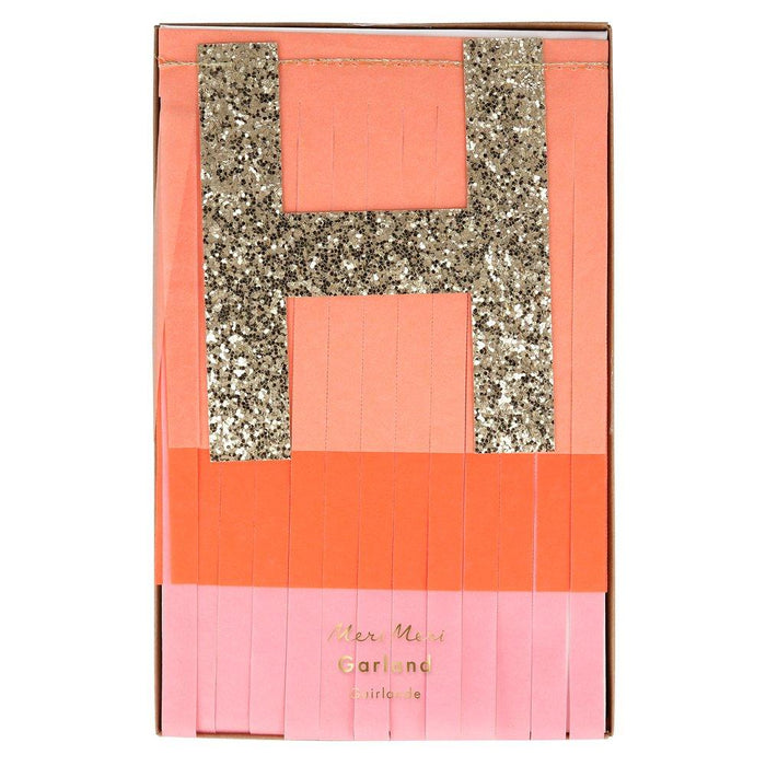 This beautiful Happy birthday garland is the perfect decoration to let the special birthday girl or boy know you care! It features pretty pink, peach and coral fringed tissue paper and glittered letters.