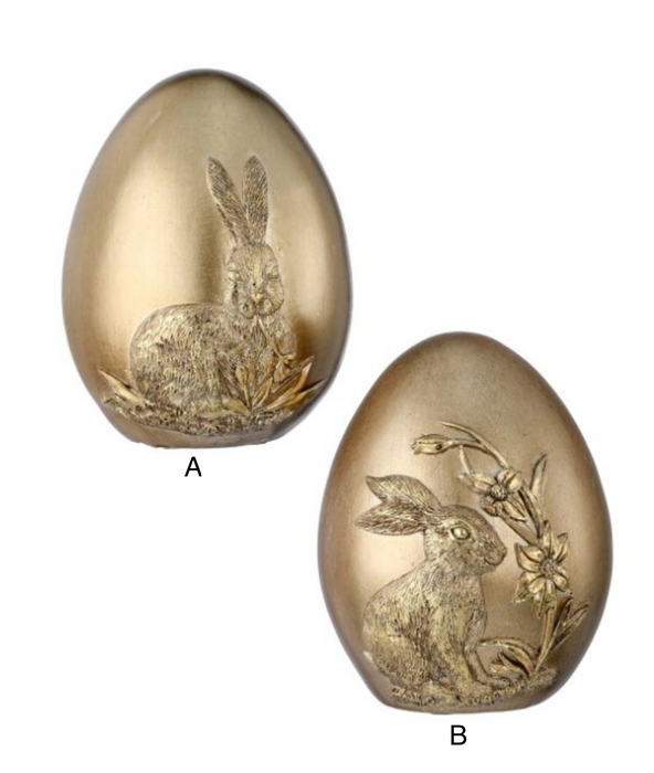 Add a touch of whimsy to your home decor with our Resin Golden Edd w/Bunny 2 Ast. Made of high-quality resin, this golden Edd statue features two playful bunnies, adding charm and character to any room. Perfect for animal lovers and anyone seeking a unique statement piece!