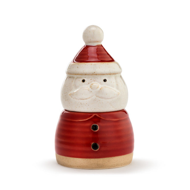 The beautiful Snow Day Santa Salt and Pepper Shaker Set is the perfect fun and festive addition to any kitchen or dining room table. This stylish two-piece ceramic set is designed with a classic vintage aesthetic and hand-thrown feel with festive colors and natural textures. This stackable set is designed to resemble a jovial Santa Claus character, with his head serving as one shaker and his signature red coat serving as the other shaker. This set is a great present option for any friends, family or loved ones this season.