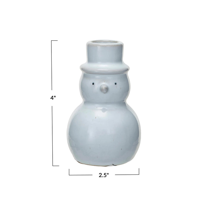 Transform your home into a cozy winter wonderland with our Stoneware Snowman Taper Holder! Crafted with a reactive glaze, this white holder adds a touch of holiday charm to any room. Perfect for displaying your favorite taper candles, it's a must-have for those who love to celebrate the magic of the season.