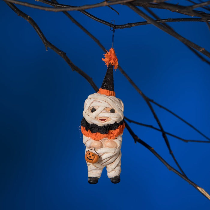 This little mummy ornament is ready to help you kick back and "unwind" after a long day of Halloweening. Makes a special gift or looks great on a tree.