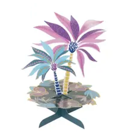 Complete your DIY tropical party with an easily-assembled tropical cupcake stand that invokes the warm colors and fun of a desert island. Product Details: - Packed Flat - Simple assembly required, instructions enclosed - Gold foil details, die cut