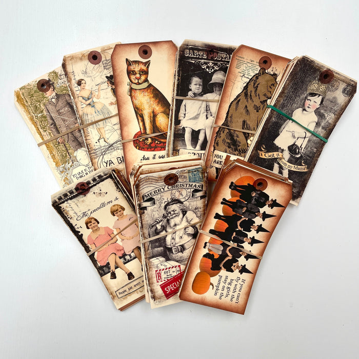 These beautiful vintage style collages printed on paper tags are a fun way to finish off a gift or just to send a note to a friend.